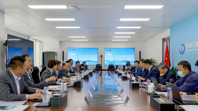 3月14日,阳光电源董事长曹仁贤一行在京拜会中国三峡新能源集团党委书记、董事长王武斌,双方就进一步深化合作事宜展开座谈交流。中国三峡新能源集团党委委员、副总经理吴启仁、吕鹏远,阳光电源高级副总裁吴家貌等参会。