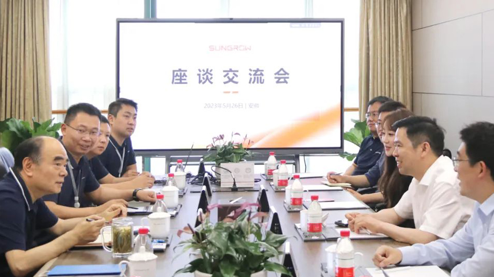 5月26日,合众新能源汽车股份有限公司董事长方运舟一行到访阳光电源,双方就进一步深化电驱动及车载充配电系统、V2G解决方案合作等开展交流。合众新能源助理总裁孙嘉琪,阳光电动力总裁洪思明等参与座谈。