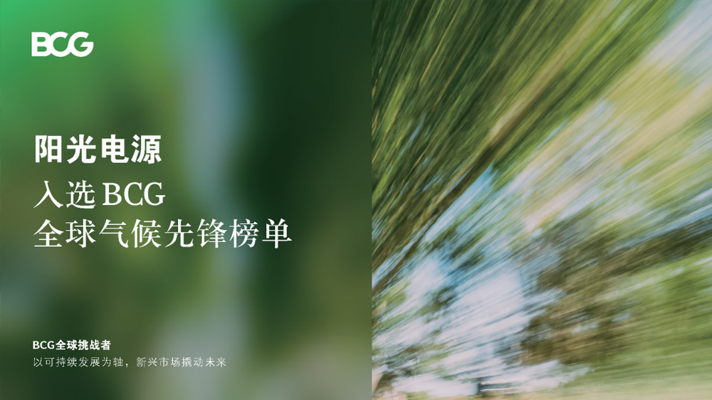 新闻 可持续发展动态 阳光电源入选BCG“全球气候先锋”榜单 阳光电源入选BCG“全球气候先锋”榜单 2023.06.05 SUNGROW 6774 分享到微博 分享到领英 语音播报 今天是第50个世界环境日。波士顿咨询BCG传来消息:阳光电源获评“全球气候先锋”。BCG纳入营收增长、全球布局等指标,结合全球权威的财务及ESG数据库,分析企业在路孚特、MSCI等维度上环境可持续性的表现,从新兴市场中评选出50个“全球气候先锋”。秉承“让人人享用清洁电力”的使命,阳光电源正通过碳排放管理、绿电使用、能效提升等实际行动,全力以赴实现2028年前自身碳中和,并携手合作伙伴共塑可持续未来。 返回列表 热点新闻 阳光电源2024年报及2025年一季报 2025.04.26 33862 阳光电源顾亦磊:光伏开拓者的「新征程」 2022.11.03 30700 阳光电源2023年报及2024年一季报 2024.04.22 29890 了解更多