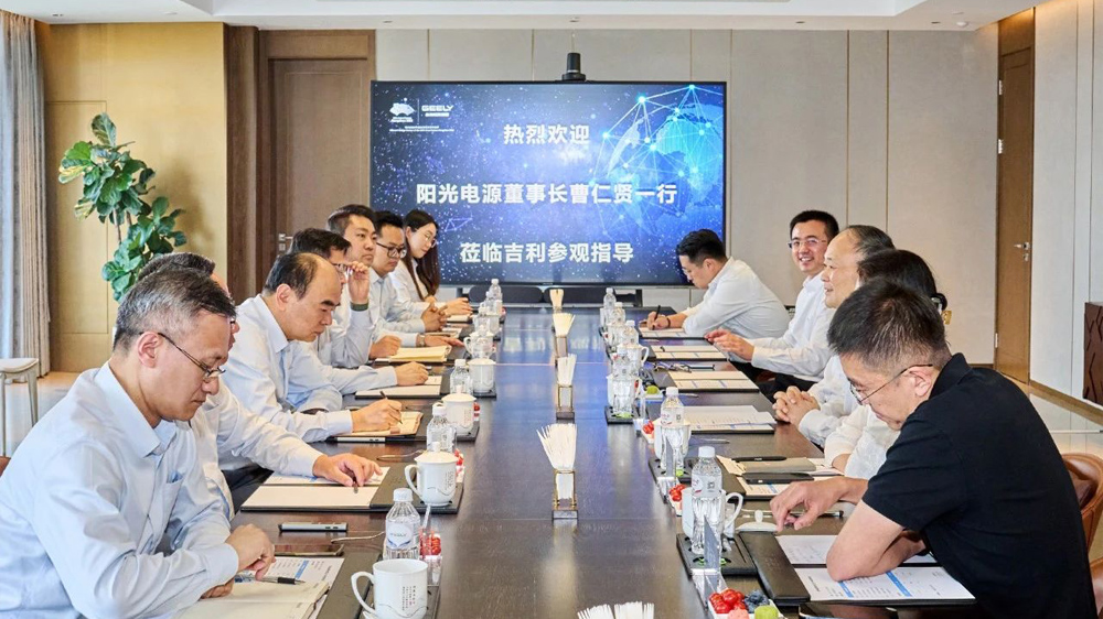 5月8日,阳光电源董事长曹仁贤一行拜会吉利控股集团董事长李书福。双方就深化风光储协同、汽车电驱动系统、醇氢生态等领域合作展开交流。吉利汽车集团高级副总裁王瑞平,吉利远程新能源商用车集团副总裁赵杰,阳光电动力总裁于安博,副总裁张旭俊等参与座谈。