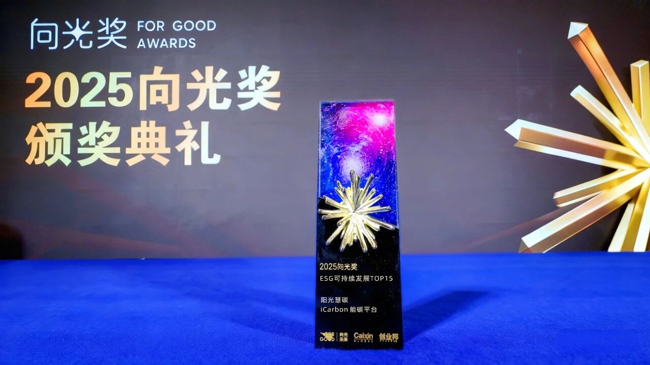 12月1日,阳光慧碳iCarbon能碳平台在2025向光者行动大会上,凭借卓越的可持续发展实践荣膺向光奖“ESG可持续发展TOP15”。该奖项历经八届发展,已成为国内ESG领域具有广泛影响力及权威性的重要奖项,其“TOP15”聚焦年度最具代表性的15个ESG产品与实践(排名不分先后),专为表彰以商业创新驱动社会价值的典范而设。此次与三峡国际、蒙牛、瀚蓝环境等行业领军企业共同入选,彰显行业认可。