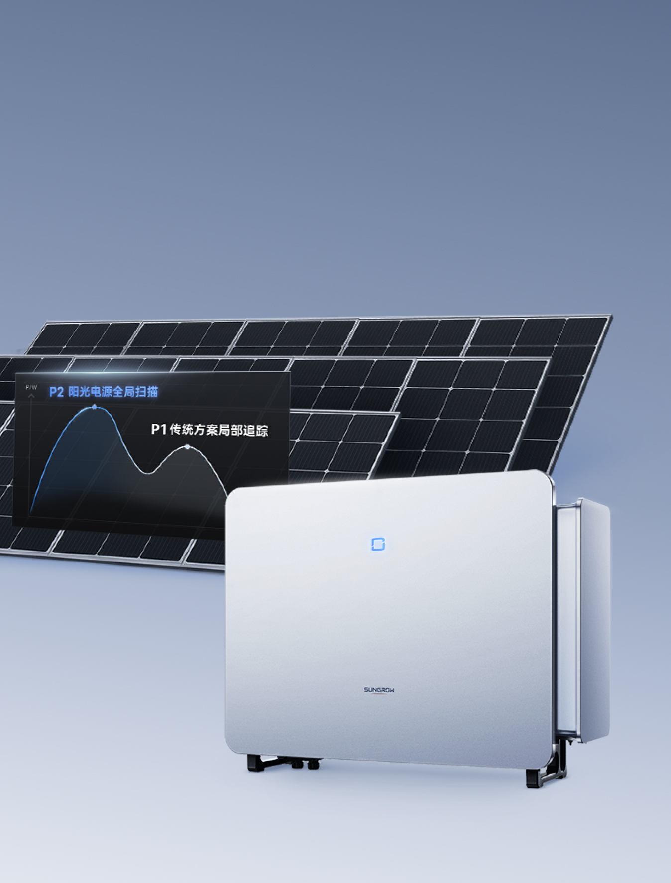 SG150CX配备全局MPPT扫描功能,无论阴晴和局部遮挡均能追踪到最大功率点,提升系统发电量高达2%